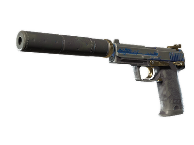 A fan favorite from Counter-Strike Source, the Silenced USP Pistol has a detachable silencer that gives shots less recoil while suppressing attention-getting noise. It has been custom painted with a solid blue slide and finished with gold accents.