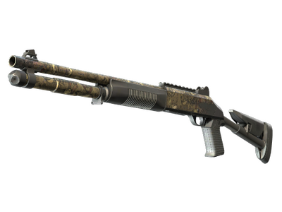 The XM1014 is a powerful fully automatic shotgun that justifies its heftier price tag with the ability to paint a room with lead fast. A tan-colored pattern of crests, scrawls, and text from the Magna Carta has been applied.
