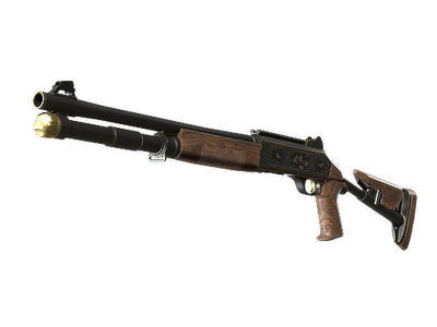 The XM1014 is a powerful fully automatic shotgun that justifies its heftier price tag with the ability to paint a room with lead fast. A silver and gold design depicting birds in flight has been custom painted on the receiver.