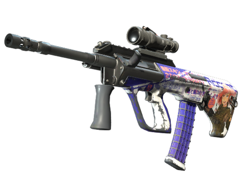 Celny i potężny karabin szturmowy AUG z lunetą rekompensuje długi czas przeładowania niskim rozrzutem i wysoką szybkostrzelnością. Broń została udekorowana naklejkami termotransferowymi w postaci okładki magazynu anime.