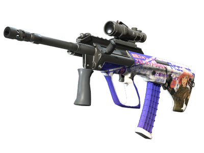 Celny i potężny karabin szturmowy AUG z lunetą rekompensuje długi czas przeładowania niskim rozrzutem i wysoką szybkostrzelnością. Broń została udekorowana naklejkami termotransferowymi w postaci okładki magazynu anime.