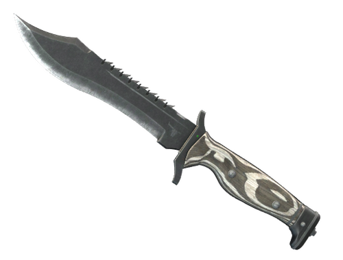 Ten nóż Bowie typu full-tang z grzbietem głowni wyposażonym w piłę jest stworzony do ciężkich zastosowań w brutalnych survivalowych sytuacjach. Ostrze tego noża zostało porysowane, a rękojeść pokryta czarnym laminatem.
