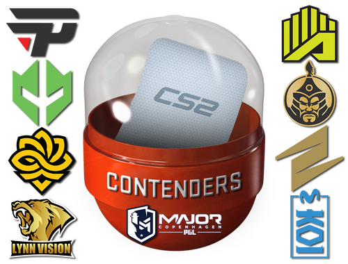 Pojemnik z naklejką kandydata PGL Copenhagen 2024