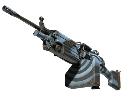 Potężny na otwartych przestrzeniach CKM M249 to idealny wybór dla graczy, którzy skorzy są poświęcić niską szybkostrzelność dla zwiększonej celności i bardzo pojemnego magazynka. Broń została ozdobiona na zamówienie przyciągającym wzrok czarno-niebieskim hipnotycznym wzorem.