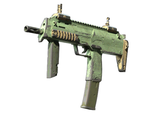 Wszechstronny, ale kosztowny niemiecki pistolet maszynowy MP7 to idealny wybór dla walk na krótkim zasięgu. Poszczególne elementy tej pamiątki z Cache zostały pomalowane farbą w sprayu na kolor oliwkowy.