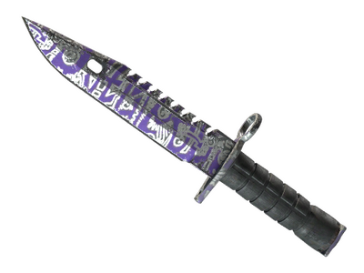 Oto bagnet M-9. Z założenia miał być doczepiany do karabinów, ale spisuje się też w walce w przestrzeniach zamkniętych. Broń została pomalowana czarną i fioletową farbą, a następnie udekorowana metalicznym markerem.