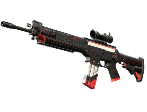 *Statystyki tego przedmiotu zostaną zresetowane, gdy zostanie on wymieniony lub wystawiony na Rynku Społeczności Dostępny wyłącznie dla terrorystów SG553 z lunetą to alternatywa dla AK-47 dzięki możliwości efektywnego rażenia na dalekim zasięgu. Broń została ozdobiona na zamówienie futurystyczną grafiką w barwach czerni, bieli i czerwieni.