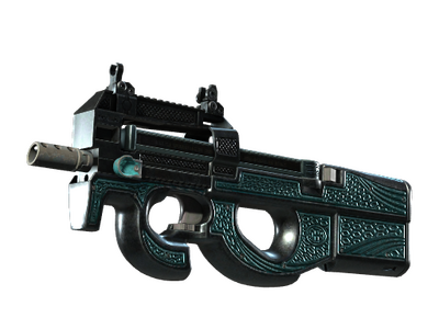 *Statystyki tego przedmiotu zostaną zresetowane, gdy zostanie on wymieniony lub wystawiony na Rynku Społeczności Łatwo rozpoznawalna przez unikatowy układ bullpup, P90 to świetna broń do strzelania w ruchu, gdyż posiada bardzo pojemny magazynek i niski odrzut. Broń została ozdobiona na zamówienie wzorem w postaci błękitnych sześciokątów ułożonych tak, aby wpasowywały się w unikalny kształt P90.