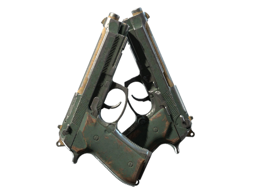 Condição: Gasto Disparar duas Berettas ao mesmo tempo significa uma baixa precisão e um tempo de carregamento maior. Mas vendo por um lado positivo, estás a dar tiros com duas pistolas de uma só vez. Certas partes individuais deste item foram pintadas a spray com tons de azul-marinho, azul-escuro e amarelo-torrado.