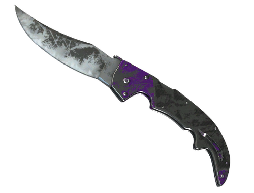 Condição: Gasto Uma homenagem moderna à espada falchion, esta lâmina côncava tem uma borda curva. Certas partes individuais deste item foram pintadas totalmente com um tema preto e roxo.