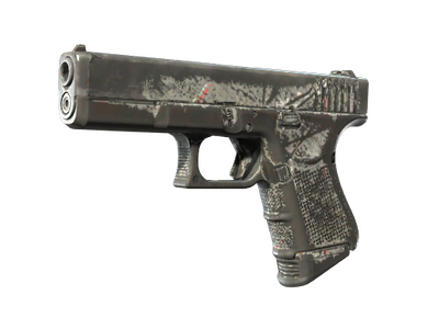 Condição: Gasto A Glock 18 é uma das pistolas disponíveis na primeira ronda e é eficaz contra oponentes sem colete nem capacete, sendo capaz de disparar rajadas de três balas. Esta arma em particular foi pintada a spray com um padrão negro e vermelho de marcas de pneus.