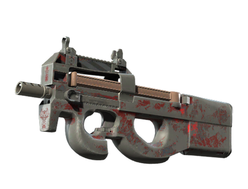 Condição: Gasto Facilmente reconhecível pelo seu design "bullpup", a P90 é uma arma ótima para dar tiros enquanto andas devido ao seu carregador de capacidade elevada e por ser uma arma com pouco recuo. Esta arma em particular foi pintada a spray e decorada com símbolos de aviso radioativos. A Coleção Nuke