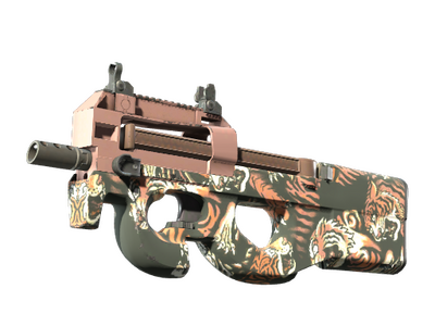 Condição: Com Pouco Uso Facilmente reconhecível pelo seu design "bullpup", a P90 é uma arma ótima para dar tiros enquanto andas devido ao seu carregador de capacidade elevada e por ser uma arma com pouco recuo. Esta arma em particular foi decorada com um padrão hidrográfico de tigre com tons castanhos e beges sobre um fundo negro.
