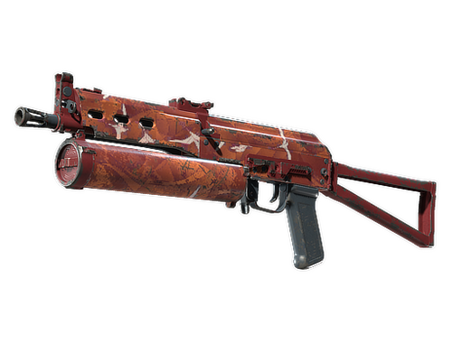 Condição: Com Muito Uso A submetralhadora Bizon causa pouco dano, mas é única pelo seu enorme carregador e pode ser carregada rapidamente. Esta arma em particular foi decorada com um padrão cor de vinho complementado por pássaros prateados.