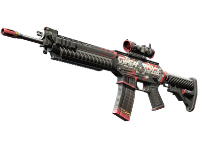 Condição: Original de Fábrica A espingarda SG553 é exclusiva para a equipa Terrorista e é uma boa alternativa com mira telescópica à AK-47 para confrontos de longa distância. Esta arma em particular foi decorada com o logótipo CYBERFORCE INC sobre um fundo vermelho e preto.