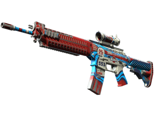 Condição: Gasto A espingarda SG553 é exclusiva para a equipa Terrorista e é uma boa alternativa com mira telescópica à AK-47 para confrontos de longa distância. Esta arma em particular foi personalizada com uma combinação de cores que prestam homenagem a um carro de corridas italiano.