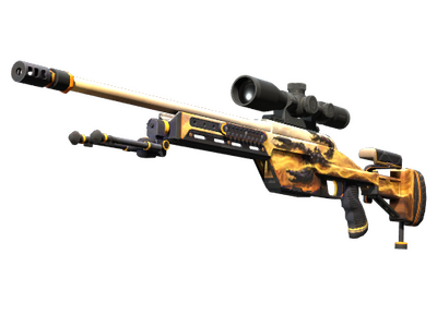 Condição: Original de Fábrica A SSG08 é uma espingarda sniper que causa relativamente pouco dano, mas o seu baixo preço torna-a numa escolha prudente em tiroteios de longas distâncias nas primeiras rondas. Esta SSG 08 em particular foi decorada com uma ilustração de um escorpião-imperador no meio de uma tempestade de areia.