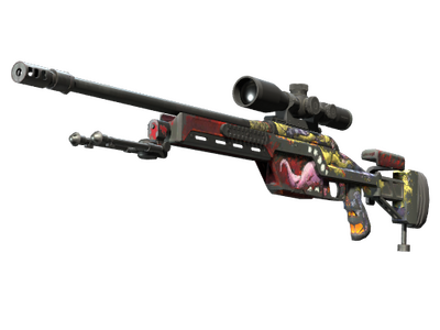 Condição: Gasto A SSG08 é uma espingarda sniper que causa relativamente pouco dano, mas o seu baixo preço torna-a numa escolha prudente em tiroteios de longas distâncias nas primeiras rondas. Esta arma em particular foi pintada com a imagem de uma criatura monstruosa com tentáculos verdes, dentes e um olho.
