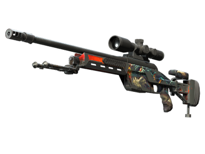 Condição: Gasto A SSG08 é uma espingarda sniper que causa relativamente pouco dano, mas o seu baixo preço torna-a numa escolha prudente em tiroteios de longas distâncias nas primeiras rondas. Esta arma em particular foi decorada com um padrão hidrográfico de um dragão monstruoso a cuspir fogo.