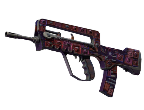 Condição: Gasto Uma opção barata quando há pouco dinheiro, a FAMAS preenche eficazmente aquele vazio entre as espingardas mais caras e as submetralhadoras menos eficientes. Esta arma em particular foi pintada com retângulos cor de rosa decorados com olhos realistas.
