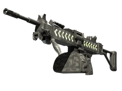 Condição: Testado no Terreno A Negev é uma metralhadora capaz de manter os inimigos à distância graças aos seus disparos supressivos e precisos, desde que disponhas do tempo necessário para a controlar. Esta arma em particular foi pintada com um padrão de camuflagem digital acinzentado e setas verde-azuladas.