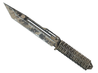 Condição: Gasto Esta faca de sobrevivência de lâmina fixa foi concebida para poder ser usada tanto como arma como ferramenta para, por exemplo, armar armadilhas, caçar animais ou cortar folhagem. O cabo está envolto em corda multiúsos. Esta arma em particular foi pintada com um efeito chamuscado.