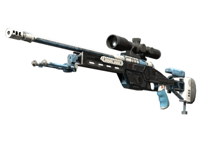 Condição: Com Pouco Uso Vítimas confirmadas: 13 *As estatísticas deste item voltarão a zero se for trocado ou colocado no Mercado da Comunidade A SSG08 é uma espingarda sniper que causa relativamente pouco dano, mas o seu baixo preço torna-a numa escolha prudente em tiroteios de longas distâncias nas primeiras rondas. Esta arma em particular foi pintada de branco e decorada com tons de cor azul-ártico.