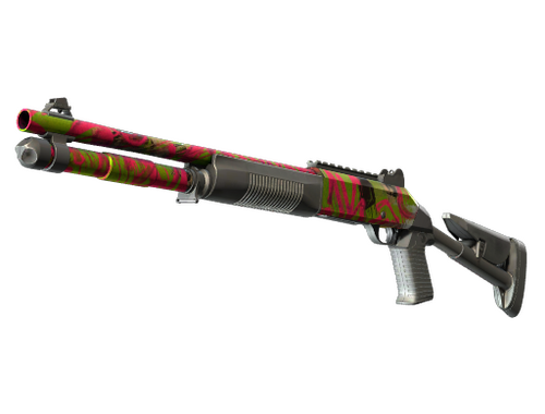 Condição: Gasto A XM1014 é uma caçadeira automática potente que justifica o seu preço elevado com a capacidade de encher de chumbo rapidamente uma sala cheia de inimigos. Esta arma em particular foi pintada com um padrão de cores vivas inspirado na cultura punk.