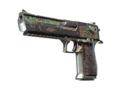 Condição: Gasto Tão cara como potente, a Desert Eagle é uma pistola icónica que, apesar de ser difícil de dominar, é surpreendentemente precisa a longas distâncias. Esta arma em particular foi decorada com um padrão meio-tom de leque verde-azul e castanho.