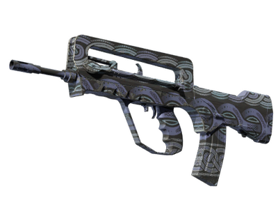 Condição: Original de Fábrica Uma opção barata quando há pouco dinheiro, a FAMAS preenche eficazmente aquele vazio entre as espingardas mais caras e as submetralhadoras menos eficientes. Esta arma em particular foi pintada a spray com um padrão azul de anéis interligados com inspiração nórdica.