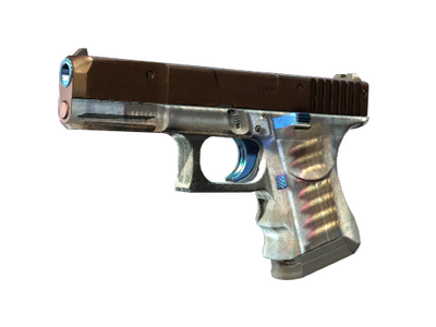 Condição: Gasto A Glock 18 é uma das pistolas disponíveis na primeira ronda e é eficaz contra oponentes sem colete nem capacete, sendo capaz de disparar rajadas de três balas. O ferrolho desta arma em particular foi pintado de bege, enquanto o gatilho foi pintado de azul. O corpo da arma é feito de polímero transparente.