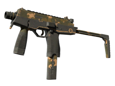 Condição: Gasto Produzida na Suíça, a submetralhadora MP9 é uma arma inovadora e ergonómica, muito usada por empresas de segurança privadas. Esta arma em particular foi pintada com um padrão de camuflagem militar bege e preto.