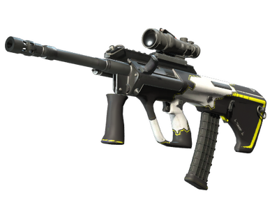 Condição: Original de Fábrica Potente e precisa, a AUG é uma espingarda de assalto com uma mira telescópica que, apesar de ter um tempo de carregamento longo, tem uma frequência de disparo elevada. Esta arma em particular foi pintada com um padrão robótico. A Coleção Huntsman
