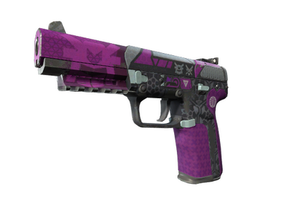 Condição: Com Muito Uso Muito precisa e útil contra oponentes com colete e capacete, a Five-Seven é cara e lenta a carregar, mas possui 20 balas no carregador e baixo recuo. Esta arma em particular foi pintada com um padrão roxo e preto.