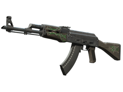 Мощная и надежная штурмовая винтовка АК-47 — одна из самых известных в мире. Наиболее смертельна стрельба короткими и точными очередями. Дубовая поверхность покрыта белыми и зелеными завитками.