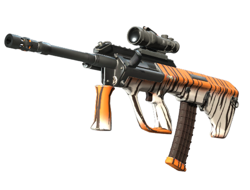 Мощная и точная винтовка с оптическим прицелом AUG компенсирует свою долгую перезарядку низким разбросом пуль и высокой скорострельностью. Окрашено в тигровые полосы с использованием аквапечати. Коллекция eSports 2014 Summer