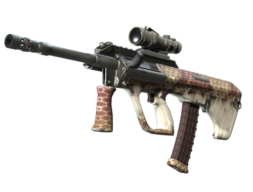 Мощная и точная винтовка с оптическим прицелом AUG компенсирует свою долгую перезарядку низким разбросом пуль и высокой скорострельностью. Текстура чешуи медянки была нанесена водостойкой краской. Коллекция Dust