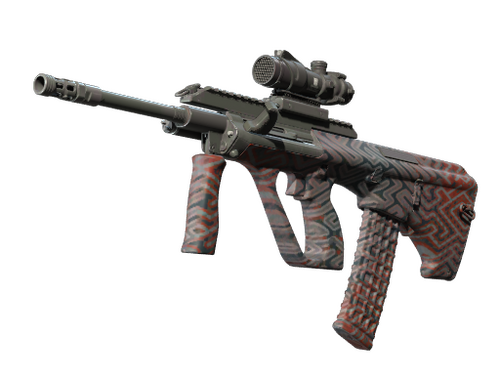 Мощная и точная винтовка с оптическим прицелом AUG компенсирует свою долгую перезарядку низким разбросом пуль и высокой скорострельностью. Рисунок в виде изометрического лабиринта нанесен баллончиком с помощью трафарета.