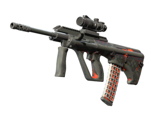 Мощная и точная винтовка с оптическим прицелом AUG компенсирует свою долгую перезарядку низким разбросом пуль и высокой скорострельностью. Рисунок в виде знака радиологической опасности нанесен баллончиком. Коллекция Cache