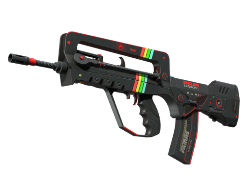 Дешёвый выбор для не очень богатых игроков, FAMAS отлично заполняет нишу между более дорогими автоматами и менее эффективными пистолетами-пулемётами. На корпус нанесён рисунок, вдохновлённый старыми игровыми компьютерами. Чёрная основа дополнена разноцветными элементами