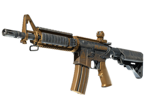 M4A4 — более точный, но слабый аналог АК-47 — полностью автоматическая штурмовая винтовка, которая находится исключительно на вооружении у спецназа. На основу угольного и золотого цветов баллончиком нанесён рисунок зарницы.