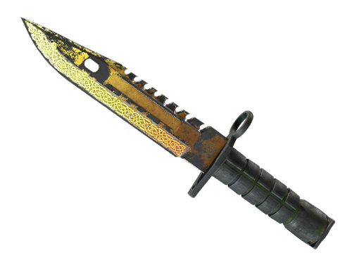 Это штык от М-9. Первоначально предназначался для установки на винтовке, но отлично подходит и для ближнего боя. Украшен рисунком вязи.