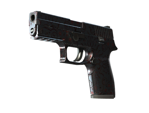 Пистолет P250 — огнестрельное оружие с высоким темпом стрельбы и низкой отдачей, представляющее собой относительно недорогой выбор против бронированных противников. На угольный корпус аквапечатью нанесён тёмно-красный узор.
