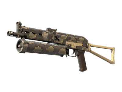 У пистолета-пулемёта «Бизон» низкий урон, который компенсируется уникальным вместительным шнековым магазином с быстрой перезарядкой. Узор в виде змеиной кожи нанесен с помощью аквапечати.