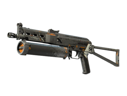 У пистолета-пулемёта «Бизон» низкий урон, который компенсируется уникальным вместительным шнековым магазином с быстрой перезарядкой. Раскрашено вручную в черный, белый и янтарный цвета в стиле хай-тек. Коллекция «Прорыв»