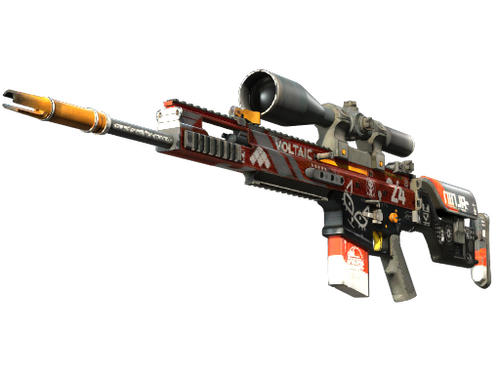 SCAR-20 — полуавтоматическая снайперская винтовка, которая предлагает высокую скорострельность и большой урон на расстоянии, в обмен на более медленную скорость передвижения и большую стоимость самого оружия. На корпус нанесена красно-чёрная аквапечать, покрытая множеством белых наклеек-логотипов.