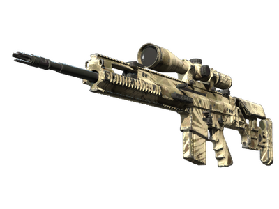 SCAR-20 — полуавтоматическая снайперская винтовка, которая предлагает высокую скорострельность и большой урон на расстоянии, в обмен на более медленную скорость передвижения и большую стоимость самого оружия. Рисунок нанесен баллончиком с использованием трафарета из обрывков картона, мелкой сетки и пальмовых листьев. Коллекция Dust
