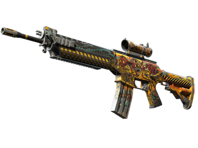 Эксклюзивный для террористов SG553 — хорошая альтернатива АК-47 с прицелом, помогающим в стрельбе на дальних дистанциях. На корпус нанесён узор из противогазов и рисунок оранжево-жёлтого потока, а поверх него — красный муравей из костей.