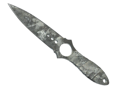 Рукоять этого скелетонизированного ножа для удобства обмотали изолентой. Отверстие нужно для того, чтобы в неё можно было продеть палец: как для удобства, так и для безопасности. Рисунок нанесен баллончиком с использованием трафарета из спутанной клейкой ленты.