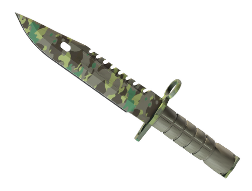 Это штык от М-9. Первоначально предназначался для установки на винтовке, но отлично подходит и для ближнего боя. Текстура лесного камуфляжа была нанесена водостойкой краской.